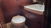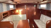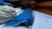 This example is ready to sail, with upgraded electronics, leather interior, solar panels, heating, and a complete set of sails including mainsail, furling genoa, and spinnaker.