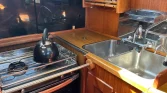 Galley: L-shaped with 2-burner Eno gas cooker, fridge, freezer, double sink