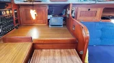With her full-length keel, rugged GRP construction, and pilothouse-protected cockpit, “Issy” is designed for both offshore passages and relaxed coastal cruising. She features in-mast reefing, AIS (2022), Vetus bow thruster, electric windlass, 4-man liferaft (2023), and freshly serviced sails (2023–2025). Every detail of this yacht reflects careful ownership and practical design for safety, comfort, and performance.